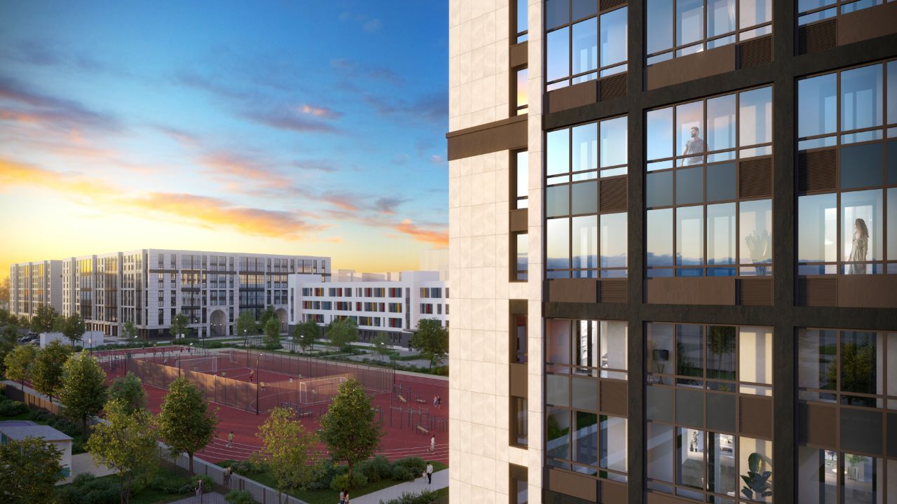 Фасады домов будут выполнены в неоклассическом стиле – из керамогранита теплых кофейных и серых оттенков. Жилой комплекс рассчитан на 3048 квартир общей площадью порядка 116 тысяч кв. м.